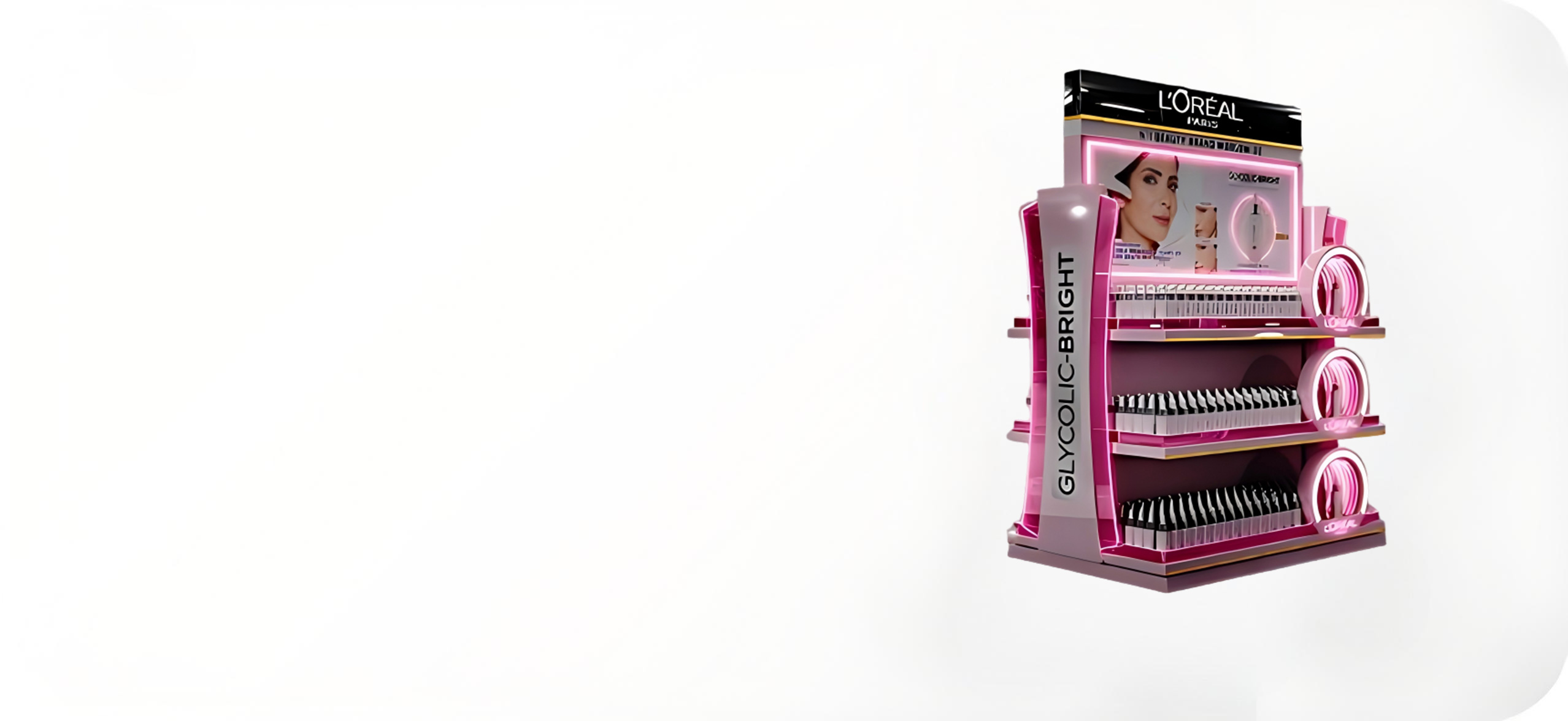 Based in Shenzhen with a factory in Dongguan, we deliver customized displays across 11 categories, from consumer electronics and cosmetics to wearables and illuminated showcases.